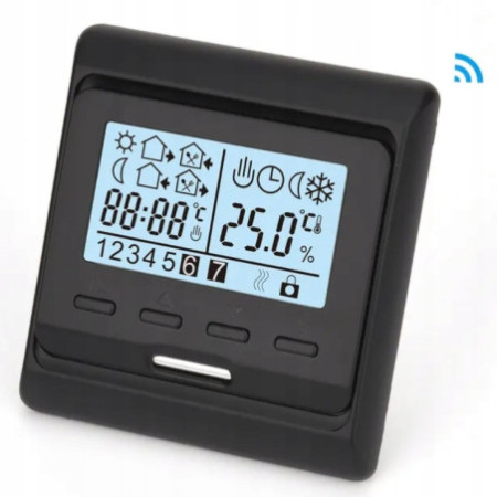 Panel jest bardzo czytelny, dzięki czemu nie ma problemów z nauką obsługi urządzenia. Warto zaznaczyć, że model posiada stopień ochrony IP20, co oznacza, że może być instalowany w pomieszczeniach o podwyższonej wilgotności, jak np. łazienka. Ponadto, termostat ma niskie zużycie prądu 2W, a jego minimalistyczny design będzie pasował do wielu wystrojów wnętrz, niezależnie czy to kuchnia, toaleta biuro czy salon.